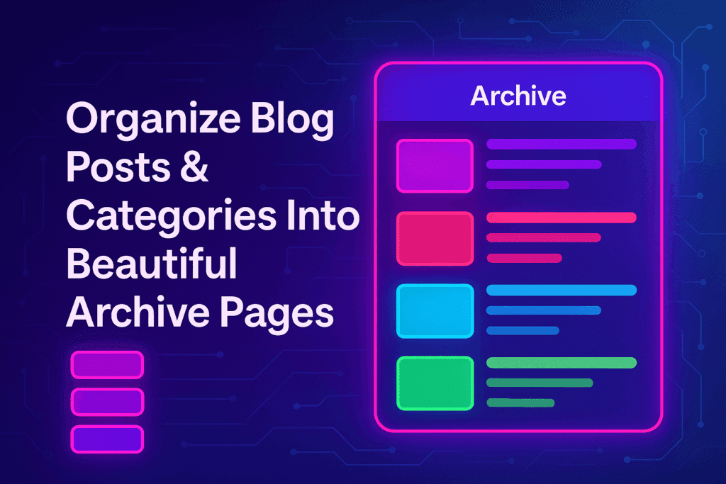 We’ll design an archive layout that makes it easy to navigate blog posts, categories, tags, or podcast episodes—sorted by time, theme, or relevance.