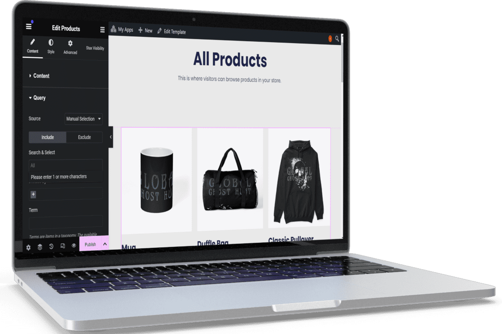We’ll design a polished shop page that groups your products with easy filtering, category organization, and a consistent branded interface.