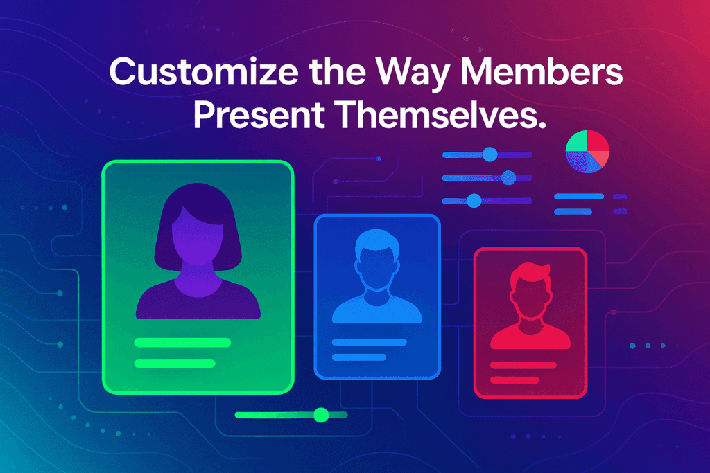 Design profile layouts and fields so members showcase achievements, roles and the signals that matter.