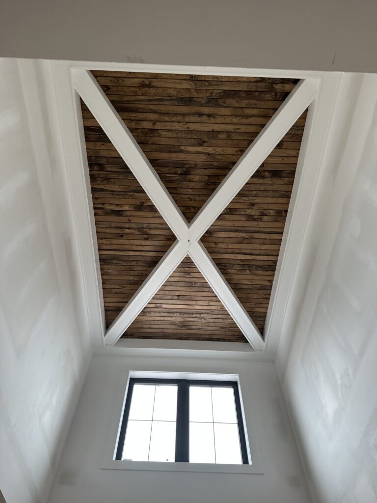 Inside, we build custom accent walls and ceiling features that add warmth, character, and a true finishing touch.